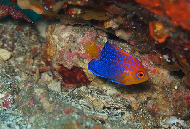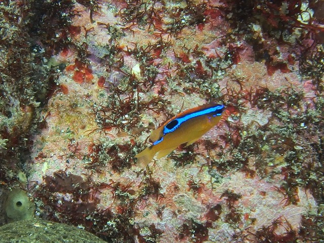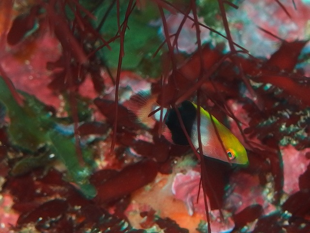 今日は下のほうがちょっと冷たい潮が来ていました。とは言え23℃なので問題ないですが。上のほうは26℃はあるのでぬくぬくです。今日も左側をのんびり回ってきました。岩場では小さなレンテンヤッコの子供やキツネベラの子供、コブダイの子供などが出てきました。キツネベラとかこんな小さなサイズは見たことなかったですね~。かわいすぎます・・・。浅場ではギンイソイワシだと思いますが固まって群れていました。水もきれいなのでまさに南国リゾートな景観です。やばかった~。他にもミヤコキセンやハクセンなど南方種のスズメダイも来ています。こちらもやばいですねぇ。あちこち目移りしてついロングダイブになってしまいます。楽しすぎですよ~。