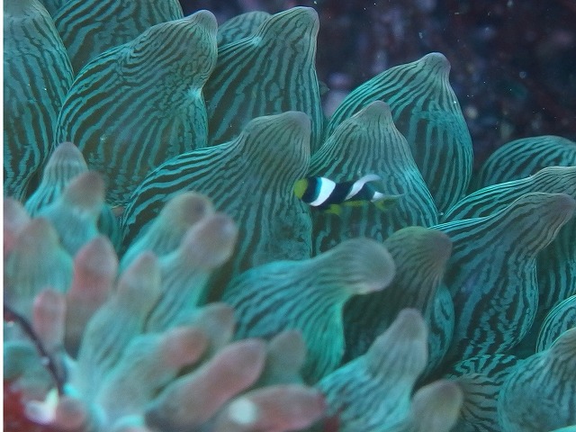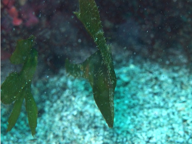 水中は底揺れもそれなりにあり浮遊物も多いですね。以前のような緑がかった潮が少なく青い潮が入れ替わってきているように感じました。きれいな潮に入れ替わりですかねぇ。期待しましょう。さて、根周りではベニカエルやクリアクリーナーシュリンプなどが見られましたね。また、イシモチの群れの中にウメイロの子供が混ざっていました。一匹だけ黄色が目立っていましたね。写真のカミソリウオは抱卵中。後ろからひれの隙間を撮影してみました。きれいな卵が一列、撮れました~。そしてよく見ると卵の中に目が出来上がっているようです。これからもっと楽しみですね~。