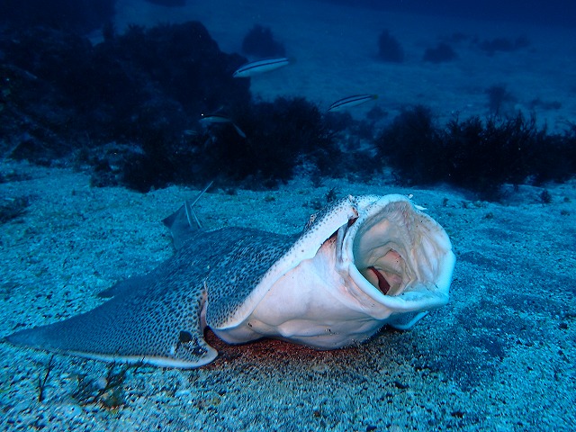 浅場こそ揺れていますが下に降りれば揺れもほとんど感じないですね。そんな中、久しぶりに2番に行ってきました。軽く流れのある中キンギョハナダイやスズメダイ、シラコダイがものすごい群れを作ってますね。ほんと、魚影が濃いです。サクラダイも美しいですね。帰りの砂地で見つけたカスザメが久しぶりに大あくびを見せてくれました。何度見ても迫力ありますねぇ。トサカにはスケロクウミタケハゼやノコギリハギがついてました。久しぶりの2番は本当にきれいでした。冬時期の透視度が上がった時に行くとさらに綺麗です。お勧めですよ~。