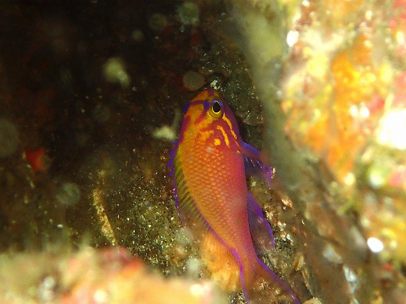 水温も15℃から14℃になってきています。ちょっと冷たくなってきましたね。そんな中今日は2番へ行ってきました。相変わらずここはキンギョハナダイがものすごいことになってますね。透視度があれなもんでワイド写真はなかなかですがかなり圧巻です。そして、クロクマも健在でした。ちょこちょこと動いているようですね。そこからちょっと深場へ行くとハナゴンベがいますがこちらは今日もかなり出が渋かったですね。かろうじて亀裂の中の写真は撮れましたが・・・。さらに仲間がイバラダツを発見!久しぶりに見れましたね。サイズもそこそこあって綺麗な個体でした。もう少し浅いといいのにと思ってしまいます。それにしても2番もかなり熱いですねぇ。楽し~!!