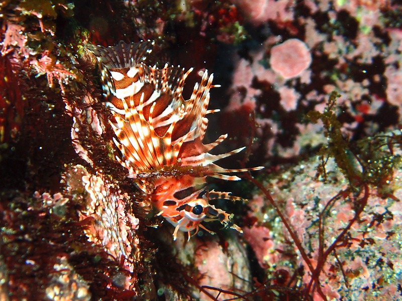 ENEXエリアは真っ白になっていて何も見えなかったです。入江も同様でいろいろ舞い上がっていました。それでも水は昨日よりも綺麗でもやっとはしていますが青いですね。10m以上は見えています。揺れも根周りまでありますがクエ穴くらいまで降りるとあまり気にならなくなります。中層はスズメダイの群れが多かったですねぇ。なんか固まっていました。そして、ピカチューも少し動いていますがまだ健在です。近くにはイガグリウミウシもいましたね。そして、ハナタツも健在でしたがうねりにかなり翻弄されていました。さて、明日からの週末、海況は落ち着くかな~と思いますがどうでしょう。ガラガラですので是非、お越しください。まだまだ受付中です〜。