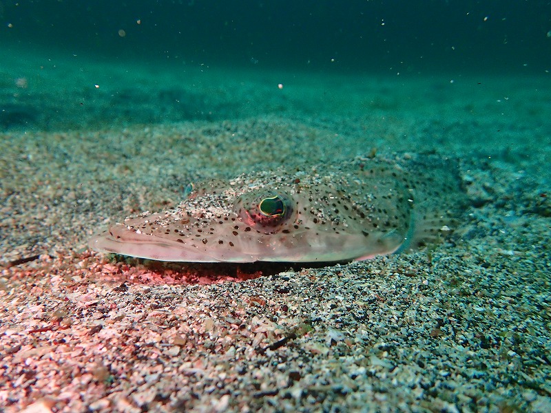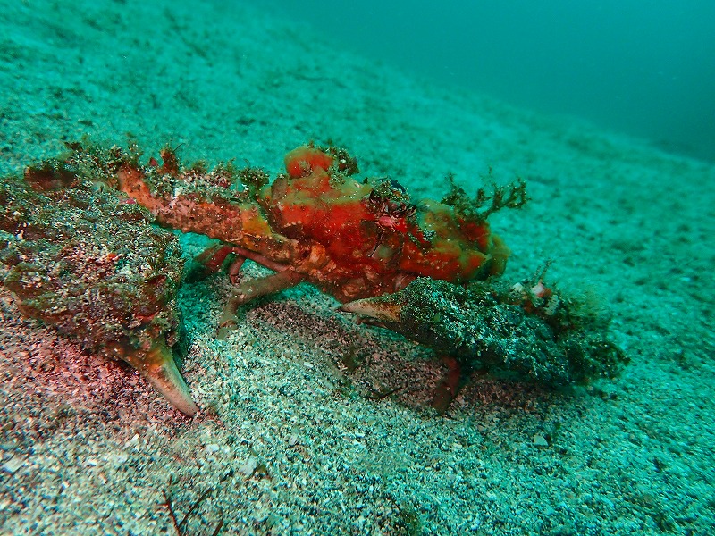 透視度は昨日ほどではないにせよ全体的に5mちょっとでした。今日はいつもはあまり行かないコース取りで深場に行ってきました。きれいな水を求めていたわけですが行けども行けどもうすぼんやりとした潮がつづききれいな潮にはあたりませんでした・・・。砂地ではサカタザメが良く出ていますね。そんな季節ですかねぇ。そうかと思えばシビレエイなんかも出たりして、なかなか面白い砂地です。そして、久しぶりにヒシガニも見つけました。相変わらずかっこいい?フォルムですね。さて、今週末ガラガラです。サマータイムも始まりのんびり3ダイブも可能です!ぜひご参加ください~