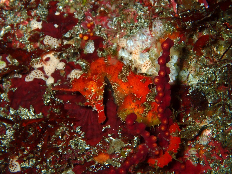 さて、海況ですが見た目には穏やかなんですが波長の長いうねりがうっすらと入っていました。影響はほぼないのですが不気味でしたねぇ。透視度は変わらず10~20m。水温差もしっかりあって流れてましたね。今日も中層はイワシの群れで大賑わいです。タカベやメジナなども群れ群れでした。そして、ベニカエルもペアが同じところにいてくれました。オスメスそれぞれ離れていましたがメスをよく見るとすぐ下にオスの姿が・・・見えます。実は離れていたオスはつられてやってきたらしく本当のペアはこちらだったようです。なんか微妙ですねぇ。そして、クマノミの卵もさらに成長していてハッチアウトもそろそろかな~と言う感じです。ワクワクしますね~。