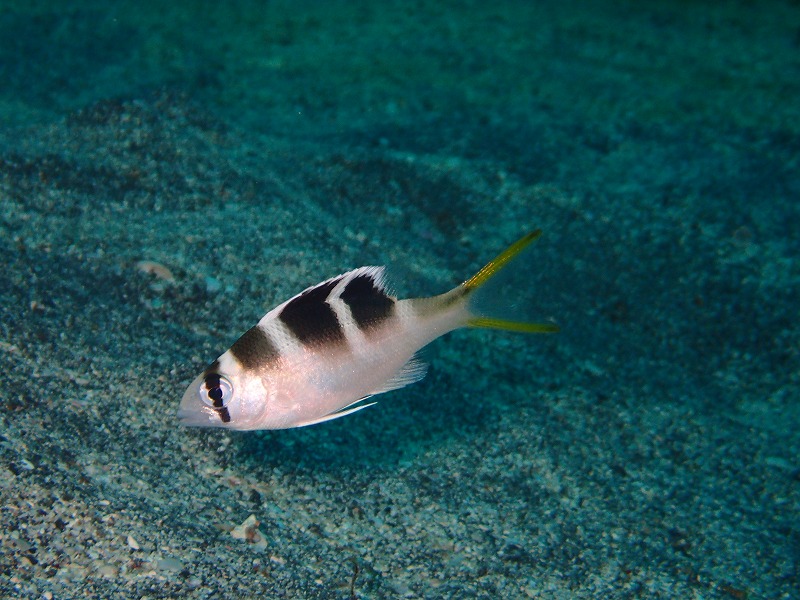 中 に入ると水温もどこまで行っても26℃、透視度も10m以上ありまずまずでした。水温が高いのがありがたいですね~。さて、台風も過ぎて海の中も落ち着い てきたのか南方種がいろいろ出始めてきました。浅場ではアカハチハゼやモンツキハギ、ニセカンランハギなどが増えてきました。クロユリハゼもだんだん大き くなってきましたね。そして、砂地では抱卵中のカミソリのペアやヨコシマクロダイが見られました。久しぶりにベニカエルも登場でした。しかもあくびのサー ビス付きです!最近はベニも少ないので貴重ですね。水面近くでは今日もイトヒキアジが出ていたようです。なかなか当たりませんが・・・。さて、明日以降も 海況は良さそうです!!潜りに来ませんか~
