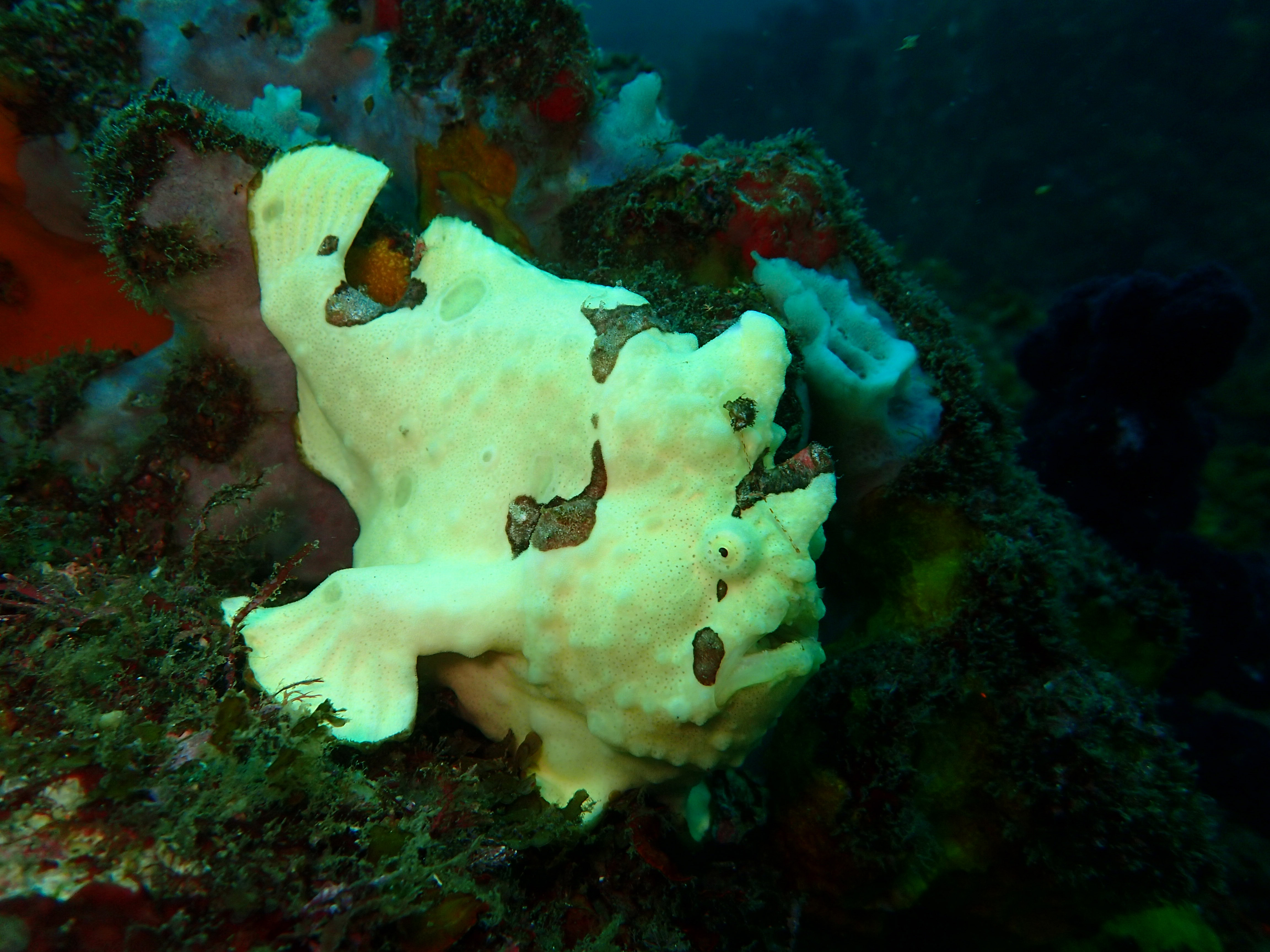 中 に入ってしまえば揺れもなく快適でした。透視度などは変わらず10mほどです。下に降りていくとそこそこ綺麗な潮がありました。さて、今日は久しぶりにブ リマチの方へ行ってきました。去年から見ているイロカエルアンコウ、かなり久しぶりに見に行ってきました。久しぶりに見てみるとちょっと引くくらい大きく なっていました。コブシ以上のサイズとなっていて体もごつごつしていました。これだけのサイズのイロカエルはあまり見かけませんね。貫禄がものすごかった です。その途中ではヘラヤガラやちいさなツユベラなどの南方種も見られました。ぼちぼちこの方面もいろいろ出始めてくる感じです。ちょっと通って探してみ ようかな~。そして、相変わらずハナダイは美しいですね。最近は毎回のブログ登場でした。きれいでかわいくてほんとやばいですね~。大事に観察していきま しょう!!