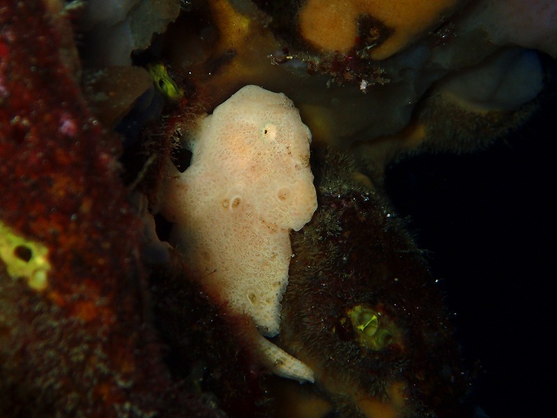 さて、この風のおかげでベタ凪かと思いきや朝一は南のうねりが残っていて時折いいサイズのうねりが入っていました。時間とともに風も弱まってきてうねりもおさまってくれたので良かったです。中に入るとやはり朝一はちょっと白っぽくなっていましたがこちらも時間とともに回復してくれました。そんな中今日もクダゴンベを見に行ってきました。今日はちゃんと2匹とも見れましたね。小さい方はあまり動かずいい子でした。相変わらず綺麗なお魚です。そして根周りではフリソデをはじめ各種カエルアンコウも健在です。ここ最近行方不明だったオオモンも復活しました!!これでまた4種類見ることができますね~。よかった~。また、ベニシボリも数が増えてきました。これからもっと見つかりますね!!と言う訳で浅場から深場までネタも多く水も綺麗なのでワイドもばっちりいい感じです。やばいですね~、面白すぎです!!