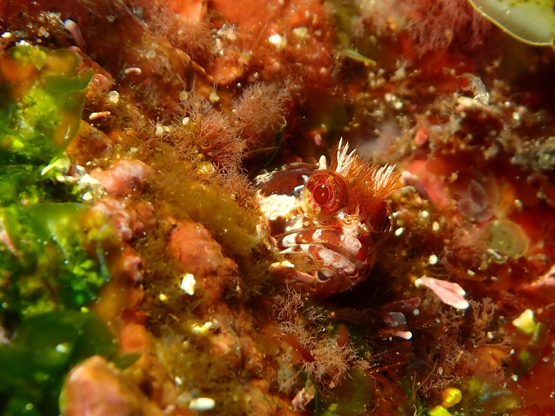 水は青っぽいので春濁りな感じではないのでまた回復するかとも居ますがなんか日替わりですね~。長続きしません。こんな感じだったので今日は砂地をメインにずりずりと潜ってきました。かけあがりのオオモンも前回とは真逆に位置で無事に確認できました。ジョーフィッシュも相変わらずですぐに引っ込んじゃいますね。写真は難しい~。そして、小さなマトウダイの赤ちゃんも登場!!入る前にみんなで話していての登場でした!!見つけたバディーの引きの強さに脱帽です。小さくてやばいくらいにかわいかった~。また見つかるといいな~。そして、入江では驚異的な浅場にいるサクラダイを確認してきました。こちらも綺麗でいい感じです。透視度はう~んですがいろいろいて目玉もあって面白いですよ!!