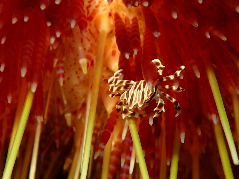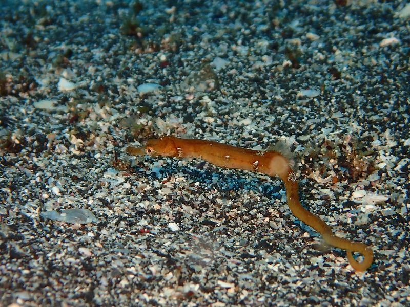 一昨日の濁りは何だったの?っていうくらいの激変ですね。20mは見えています。そんな中今日は砂地を一番方面に流して回ってきました。ジョーの巣穴はこのうねりでさすがに埋没。また出てくるのを待ちましょう。小さなタツノイトコが海藻についてゆらゆらしていました。かなり落ち着きがなくて砂地をすぐに徘徊し始めました(笑)そして、深場のハナタツは3匹確認できました。2匹は並んでヤギについていましたね~。で、両方撮るのは難しいです・・・。1.5番では久しぶりにゼブラガニも見られました。まだ小さい子でしたがかっこいいカニです。入江ではキビナゴとタカベの群れがやばいですね~。今日は特に潮が綺麗だったのでなおさらです。キラキラしながら泳いでました。さて、ここのところ潮が日替わりで濁ったり綺麗になったりです。がっつり春濁りって感じではないので綺麗な潮もまだまだ期待できます~。明日はどうかな~。