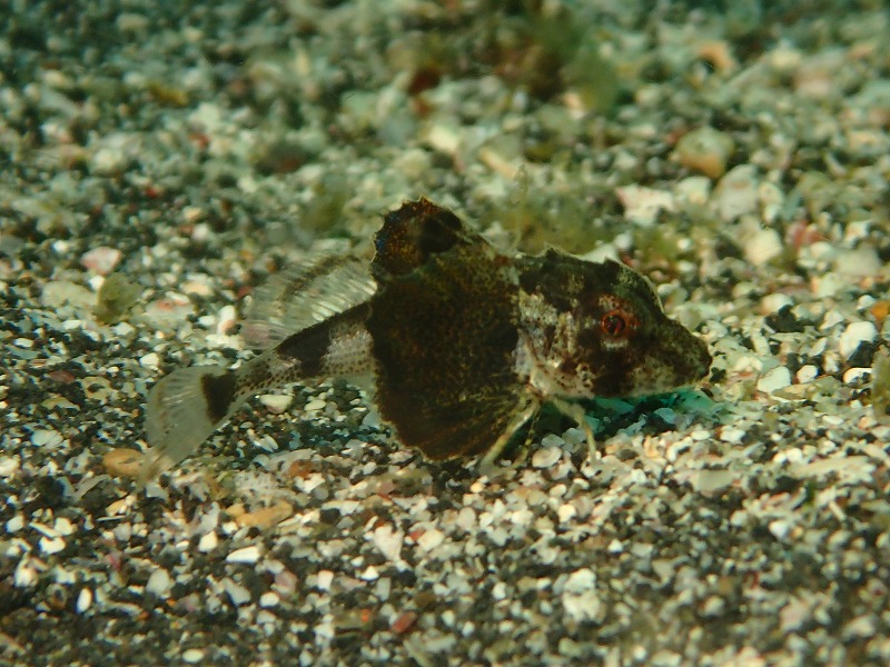 昼干潮なのでこの時間帯はかなり引いていてエキジットがちょっとやりにくかったですね。透視度の方も8mほど見えています。天気も良いのでかなり明るいですね。また、深場の方は青くて綺麗な水もありました。これ上がってきてくれないかな~。こんな感じの中久しぶりの方たちと元気に3ダイブ潜り倒してきました。根周りではビシャモンやゼブラ、イボイソバナガニ等の甲殻類が見られました。ゼブラガニは大きかったな~。今までで最大かもです。カエルアンコウたちもそれぞれ定位置で見られました。砂地では久しぶりのシビレエイが登場。ビリッとすればよかった(笑)ジョーフィッシュも相変わらずの渋さですね。すぐに引っ込んじゃいました。ホウボウは少し大きくなった子に会えました。少し色づいてきてきれいになっています。マツバギンポも元気でしたね~。さて、明日以降はさらに海況も落ち着くんじゃないかな~。GWまだまだ空きもありますのでぜひ潜りに来てください。お待ちしています~。