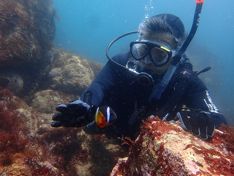 今日ご参加のゲストの方はなんと20年ぶりのダイビングということでリフレッシュコースにご参加頂きました。お孫さんやご家族に海の写真を見せたら喜ぶだろうということで再開されたとのことです。素晴らしいですね。きっとお孫さんたちも喜びます。また、事前にプールでのリフレッシュも済ませてきていただいて準備万端で海にいらっしゃいました。とはいえやはり海、最初はいろいろ緊張などもありなかなかうまくいきませんでしたがゆっくり原因を探りながら進めていき無事まぐることができました。こうなると水を得た魚です!!水中はすいすいと中性浮力もとってのあおり足!!マスククリアも難なくこなして1本終了しました。午後の2本目も完璧でしたね~。もう普通にファンダイブでした。やっぱり体が覚えてるようですね。すっかりストレスも取れて楽しんでいただきました。これから本格的にダイビングをするのにもいい時期ですね~。ブランクのある方~、ぜひリフレッシュしてこの夏遊びましょう!!お待ちしています~。