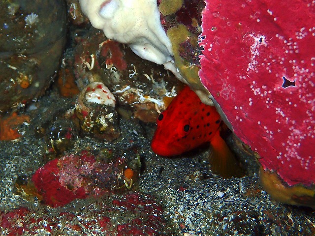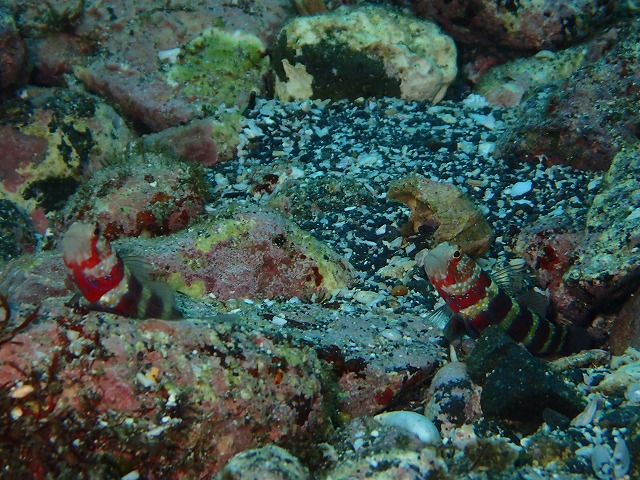 波はまったくなくストレスなく出入りもできました。透視度が昨日よりも少し落ちていましたがそれでも10mは見えていて十分綺麗です。中層は変わらずキビナゴが群れ群れでカンパチ軍団もガンガン突っ込んでいました。フタスジタマガシラやノコギリハギなども定位置で確認できました。ガラスハゼも変わらずいてくれましたね。そして、かなり大きく成長したユカタハタもいつもの穴にいてくれました。相変わらずナーバスで全身見せてくれません。かろうじて顔だけのぞかせたところが撮れました。なかなか慣れてくれませんね。入江ではクビアカハゼがペアで巣穴を守っていました。微妙な距離感で並んでましたね。さて、次週25日以降の平日がガラガラです~。少人数でレアネタ狙えますよ~。ぜひ遊びに来てください~。