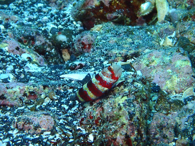 そんな中今日はグループでお越しいただきAOWとFANダイブをやって来ました~。とても仲の良いグループの皆さんでみんなで一緒に入りました。AOWスキル中は各々好きなものを撮影していたりしてましたね。透視度は少し白っぽくなっていて10mほど。先週の青い潮はどこに行ってしまったんでしょう・・・。水自体は青いので揺れが収まれば綺麗になるかと思います。揺れてる浅場でクビアカハゼやタスキモンガラなどが見れました。また、一の根のイシモチの群れは相変わらずすごいですね~。明日はもう少し海況が収まるといいですね~。明日もAOWとFANダイブやって来ます~。