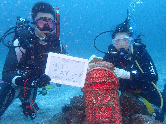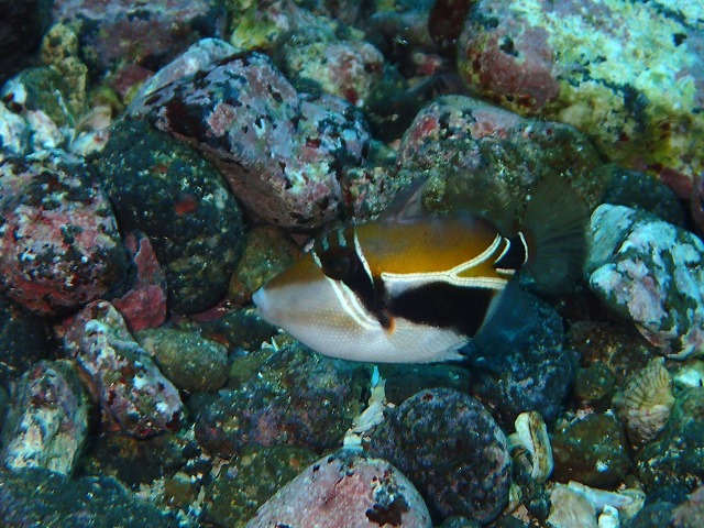 中に入ると水が綺麗になってきました。まだ少し白っぽい感じでしたが青い潮がありますね。透視度は10~15mでした。さて、今日もAOW2日目とFANダイブ。朝一から3ダイブしてきました。講習生の2人もかなり慣れてきて上手に中性浮力も取っていました。コンパスナビもばっちりでしたね。Sさん、NさんAOW認定おめでとうございます~。一緒に潜ったファンダイブチームも小さなノコギリハギやベニ、イロのカエルアンコウ、イシモチの群れ等いろいろ見れましたね~。この週末も海況が不安定な中たくさん来ていただきました。ありがとうございました~。次週3連休はとても空きがあります。是非潜りに来てください~。お待ちしています~。