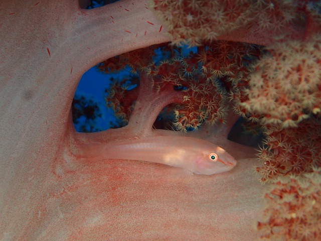 波の力はあまりないのでタイミングを見てはいれば出入りは問題なかったです。中に入ると今日も青くて綺麗であったかい潮が来ていました。ここのところ黒潮がぐぐっ近づいてきていてその影響でいい潮が入ってきています。水中の方が陸よりも暖かかったですね。いや~、素晴らしい。こんないい潮なので今日は久しぶりに2番へ行ってきました。中層を泳いでいるメジナがたくさん群れています。カブトクラゲを食べてるのかな~。たくさん固まってましたね。根周りではキンギョやイサキやソラスズメがメガ群れになっていました。相変わらずものすごい群れですね~。下の方ではクダゴンベなんかも居たようです。ミヤケテグリやコウワンテグリも定位置で見れました。コウワンテグリは砂糖菓子のような真っ白さで口をもごもごさせていました。かわいいすぎでやばいです。さて、今週末ですが7日の土曜日と9日の月曜日がガラガラです。是非潜りに来てください。お待ちしています~。