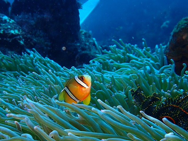 海況の方はうねりがまだ残っていてENEX注意でのオープンとなりました。昼から上げ潮でうねりも大きくなってきちゃいました。時折いいサイズのが入ってましたね。なのでタイミングを見ての出入りとなりました。入ってしまえば青くて綺麗な潮が待ってます。黒潮効果ですね、水温も25℃とぬくぬくです。そんな中今日はライセンスを取って以来2年ぶりという方が来てくれました。最初は緊張した様子でぎこちない感じでしたが次第に感覚が戻ってきたのか上手に泳いでいました。2本目はもう完全に思い出した感じで綺麗に泳いでいましたね~。これからは定期的に潜りましょう~。また、お待ちしてますね~。