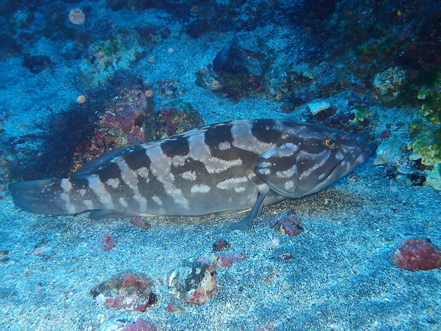 海況の方ですが昨日通過した低気圧の影響でうねりが入っていました。風が西風だったので時間とともにうねりも取れてきていましたが時折大きめのうねりが入っていました。お昼を過ぎたあたりからはだんだん凪いできた感じでした。今日は砂地から1の根周りをのんびり回るつもりでしたが手首シールのまさかのピンホールで片腕水没。頑張りましたが30分で寒さにやられちゃいました。水も綺麗で深場はうねりも感じず快適だったので残念でしたね。また、明日からリベンジしたいと思います。駆け足で一通り見てきましたがカミソリ、オオモン、アカオビ、ニシキフウライなどは変わらず定位置で見れています。フリソデも変わらず渋いですね。ペアで並んでいますが写真が撮りにくいです。そして先日リクエストの合ったクエ穴下には小さめですがクエが居てくれました。近づいても全く逃げませんでしたね。さて、ドライも直して明日もがっつり潜りましょう~。