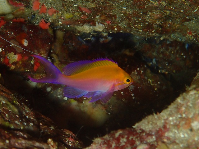 もうどこまでも見渡せるくらい綺麗です。今季最高の透視度となりましたね。いや~やばいやばい。かけあがりからツリーや漁礁も丸見え、中層のイサキの群れがやばいくらい綺麗でしたね~。こんなノーストレスな海況3本潜らないともったいないということでかっつり、ねちねちやって来ました。これだけ見えるので遠出も楽ちん、2番も綺麗でしたね。キンギョの群れにスジハナダイの群れハナゴンベやクダゴンベ等々じっくり見てきました。一番ではフリソデやニシキフウライ、オオモンなどが見られました。根の先端からの砂地の景観がやばかった~。砂地ではイサキがツリーをバックに群れ群れでしたね~。また、しばらくロストしていたイロカエルも再発見。また岩一つ動いてました。それにしても砂地がこれだけ見渡せるのも久しぶりです。これがずっと続いてくれるといいな~。最高のコンディションですよ~。