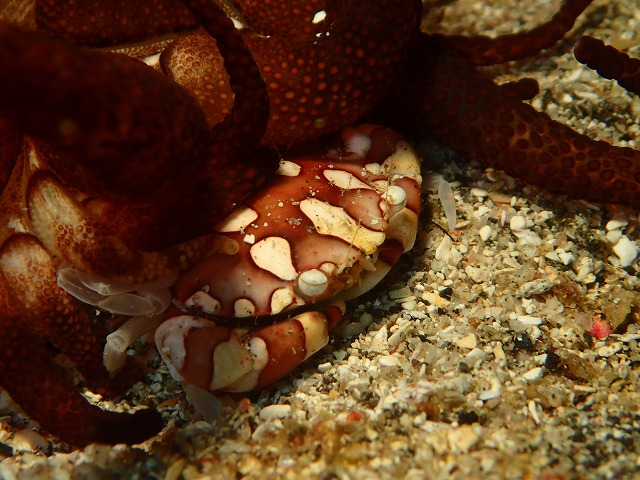 水中は少しもやっとしていましたが青くて綺麗ですね。ちょっと暗かったですが・・・。さて、世間では昨日が仕事納めだったようで今日からお休み?平日の割にたくさんのダイバーで賑わっていました。そんな今日はベテランダイバーのゲスト様と2番へいてきました。キンギョの群れに囲まれて癒されました。ハナゴンベは今日も出が渋かったですね。仲良くなれない・・・。ロストしていたイロカエルも無事確認。なんだか貫禄がありますね~。2本目は1の根へ。ニシキフウライやオオモンを見て砂地の巨大マルガザミを久しぶりに見てきました。こちらも貫禄あります。良く動くイロカエルも今日は変わらず定位置でした。その他タテキンやサザナミ、ヒメキンチャクフグなども見られましたね。さて、明日からは年末年始営業となります。がっつり潜って年越ししたいと思います~。新年1月2日からはガラガラですのでぜひ潜りに来てください~。