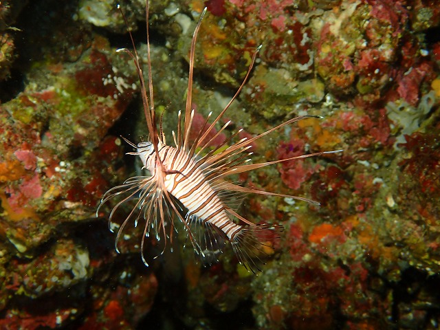 風も南西でしたがうねりもあまりなく良いコンディションでした。透視度が少し落ちましたかね。もやっとした感じで15~20mくらいとなっていました。とは言え青くて綺麗なのには変わりありませんが。さて、今日はブリマチへ行ってきました。かけあがりのイシモチの群れやイサキの群れを見つつ泳いでいると今日もカメちゃんに出会えました。いつも通りゆっくりゆっくり泳いでくれるので長い時間一緒に泳いでいられます。そっと寄っていくと逃げずに泳いでくれますね。いい子ちゃんです。ブリマチではメガ盛りのキンギョや小さなハナミノカサゴ、ツルグエなどが見られました。黒のオオモンは残念ながらいなくなっちゃいました。入江では新しい場所でのシボリに成功!小さい子が出てきました。今年のベニシボリは全体的に小さいですね。大事に見ていきましょう~。