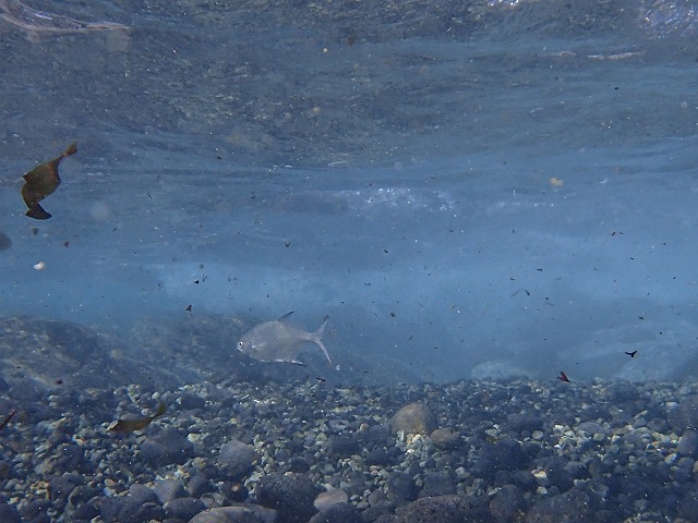出入りも全くストレスないです。中に入ると昨日同様少しもやっとしていますが15~20mは見えていて青くて綺麗です。群れがよく映えますね。イサキやタカベ、イシモチなどの群れがいい感じです。それに加えて最近はニザダイがものすごいですね。ぎゅっと固まっていてとても迫力があります。ブリマチではキンギョハナダイがメガ群れで絨毯のようになっています。こちらもやばいですね~。深場ではスジハナダイやベニハナダイも綺麗です。かけあがりでは久しぶりにキンピラも見れました。以前は黒ぶちな感じでしたが今や完全に金色になりました。もうどの位見れてるかな~。かなり長生きしてますね。そしてクエ穴ではかなり久しぶりに大きなクエが入っていました。今回はかなり近づいても全く引っ込まずにいてくれました。よく見るとその周辺の水がもやっとしています。どうやらそこに暖かい水が出ていて離れられない感じです。動画もばっちり撮れちゃいました。入江では今日もシボってきました。そして早くもムツの小さな子供たちが登場しています。だんだんと春めいてきますね~。波打ち際の超浅場ではコバンアジがまだ頑張っています。今日はこのエリアも水が綺麗だったので何とか撮れました。コバンアジ撮ってるうちに打ち上げられてフィニッシュとなりました!!