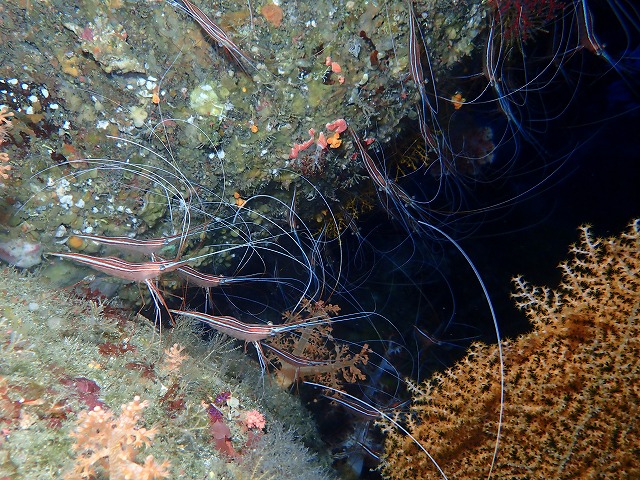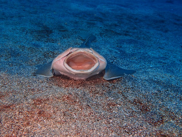 海況の方ですがならいの風の影響ですこしザブザブしていました。時間とともに風波も大きくなってきました。この為浅場はそれなりに揺れてましたね。さて、今日もがっつり泳いであそこへ行っちゃいました。今日もワラワラとオキスジちゃんたちはいてくれました。クダゴンベも近くにいていい感じです。イサキとキンギョの群れもものすごかったですね。久しぶりにホウキハタも見れました。2本目では砂地を回ってきましたが小ぶりなカスザメを見つけました。じっくりと写真を撮っていると久しぶりに大きなあくびをしてくれました。根周りではイロカエルやオオモン、カイカムリなどが見れています。この時期でもまだ頑張ってますね~。そして浅場ではベニシボリがぼこぼこ見つかりました。いよいよ安定供給となりますかね~。探すときは優しく探していきましょう~。さて、今夜から予報では雪との事。事故などのないようにお気を付けください~。