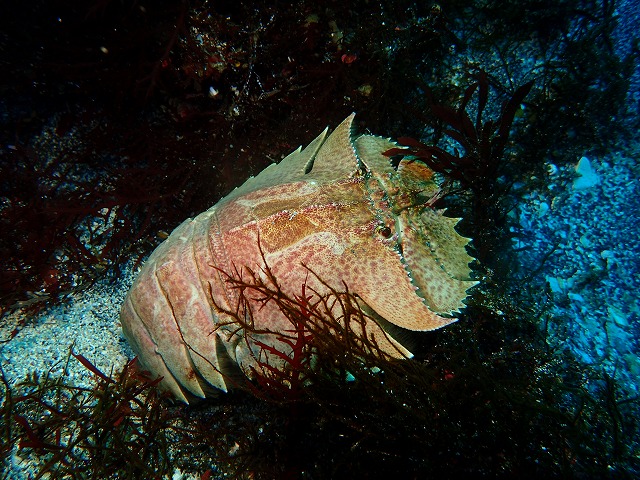 そんな今日は海洋公園で三陸唐桑産のホタテイベントの予定でした。朝のうちは潜水注意でのオープンでしたがうねりが収まり切れずに結局クローズとなってしまいました。このホタテイベントも17日土曜日に延期となりました。うねりの波はなかなかで出入りもちょっと緊迫しますね。中はそれなりに揺れていて透視度も15m位でした。全体的に白っぽかったですね。砂地くらいまで降りていくと揺れも少なくなて来ていて1の根先端あたりでは揺れもあまり感じませんでした。とはいっても浅場に戻ると揺れも大きくなっていて慌てて退散してきました。このうねりも夕方にはかなり収まってきていました。明日は大丈夫かな~。