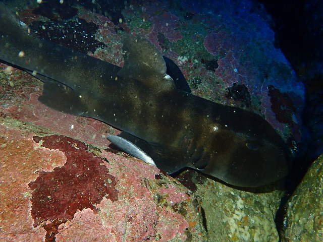 海況の方もうねりが少し残りましたが概ね良好でしたね。そんな今日は体験ダイブとファンダイブの2本立て!で楽しんできました。体験の方は岐阜からのお申し込み!遠路はるばるお越しいただきました。スノーケリングで水慣れしてからのダイビング。青くて綺麗でしたね~。耳抜きも問題なくできてすんなりと潜れましたね。とても上手でした~。次回はライセンスコースでお待ちしています!!そしてファンダイブは近場をのんびりと回ってきました。根周りでは久しぶりにハナタツも出てきてくれました。その周りをコブダイがうろうろ。すごい視線を感じました(笑)左では情報を頂きナヌカザメを見てきました。久しぶりに出てきてくれましたね。ネコザメもいつもの場所にいてくれました。カメちゃんも定位置でのんびりしていましたね。最近はかなりの確率でここにいてくれます。いい子ですね~。さて、昨日のお昼に伊豆高原入りした体験のお客様。今日の体験ダイビング後に少し観光をして岐阜へ帰っていきました~。弾丸ツアーですね~。ありがとうございました~。今週のご予約まだまだ空いてますのでぜひお越しください。21日、24.25日、31日、1日の各週末空いています。!!お待ちしています~。