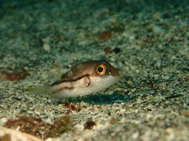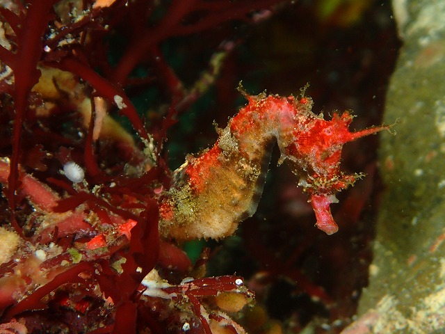 透視度は10mほどでしたがそれなりに見えていますね。水温も17℃をキープしていて暖かいです。そんな海況だったので3ダイブ楽しんできました。ここ最近定番になってきたハナタツは今日も健在でした。大きい方は見当たりませんが近くにいるでしょうね~。オオモンも定位置ですがだんだん見やすくなっています。クリーニングステーションでは大きなコブダイがクリーニング中でした。あいかわらずエラ全開で気持ちよさそうでした。そして先日見つかったサガミリュウグウウミウシも無事に見れました。毎年同じようなところに出ますね~。がっつりとコケムシを食べていました。午後は浅場を流しているとキンピラが珍しく元気に泳いできました。なかなかパワフルな泳ぎでしたね。さらにまだ生まれたてのネコザメ赤ちゃんもいました。じっと動かずその場にいましたね~。明日も居てくれるかな~。さて、ちょっと透視度は落ちちゃいましたが水も暖かいしネタも多いのでかなりおもしろくなっています。是非潜りに来てくださいね~。お待ちしています~。