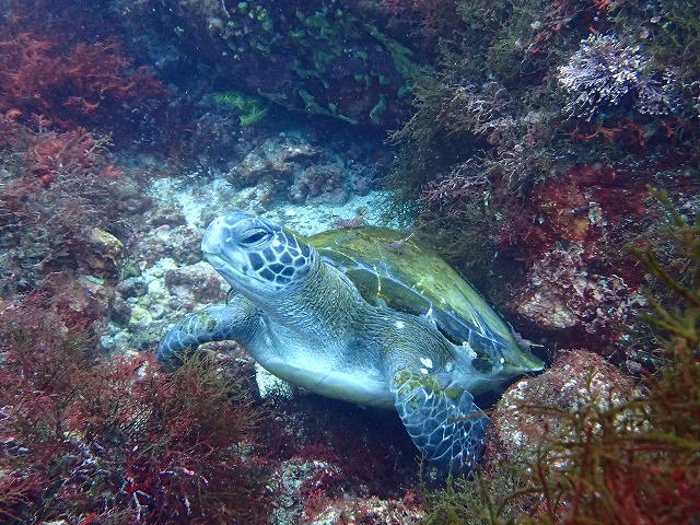 結局雨は解散後に本格的に降ってきました。ダイビング中は降られなくてよかったです。海況の方もうねりがほんの少しあるくらいで穏やかでした。出入りも問題なかったですね。透視度も10~20mとまずまずでした。太陽が出てる時間は明るくて綺麗でしたね。さて、今日も浅場の群れがきれいでした。キビナゴやタカベの赤ちゃん、水面にはナミノハナも見れました。そして根周りではいつものハナタツやオオモン、ベニが見られました。もちろんコブ蔵にストーカーされながら回ってきました(笑)そして途中の砂だまりでは久しぶりにミスガイも出てきました。そのそばではベニシボリも居たのでコラボで写真も撮れそうです。そして今日もカメちゃんに会いに行ってきました。いつもの巣穴にちゃんといてくれましたね~。甲羅にはたくさんサラサエビを乗せていました。砂地ではカスザメが泳いでいて着底したらいきなり大あくびをしてくれました。いきなりでしたが撮れて良かった~。さて、次週21日(土)が空いています。22日は初島に行きますがこちらも若干空きがあります。そしてもうすぐゴールデンウィーク!!各日程空いてますのでぜひお越しください!!伊豆合宿なんていうのもいいかもです!!よろしくお願いします~。