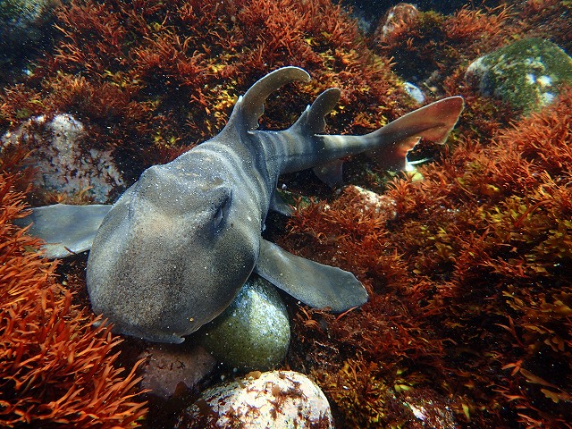 こんなに近いのに船に乗るとテンションも上がりますね。ゆっくりと島時間が流れます。そして海況もうねりも波もないチョーベタ凪という最高のコンディションでした。潮も青くてとても綺麗でしたね。20m位は見えていました。やばかった~。エントリーしてすぐ足元にネコザメがいきなりいました。水深は1m位ですかね。ネコ穴にもいつものネコちゃんがいてくれました。そしてかけあがりのイシモチの群れは相変わら圧巻でしたね。さらにすごかったのがキンメモドキの群れでした。こんな時期も居るんですね~。かなりの広範囲に群れていましたね。これも圧巻です。そしてウミウシもたくさん居て大量発生中のサガミリュウグウやピカチュウ、サクラミノやヒロ、そのほかたくさん見れました。最高の天気で最高のコンディションの初島やばかったです~。22日にまた行ってきます~。30日も初島に行きます。両日まだ若干名空きがありますのでぜひお問い合わせください~。プチリゾートやばいですよ~。さて、GWはまだ空きがありますので旅行の隙間にぜひお越しください。また連休中の伊豆合宿もお勧めです。ポイントリクエストも可能ですのでぜひお越しください~。