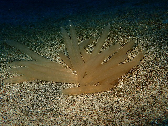 ちょっと曇がありましたがちょうど良い感じでしたね。海況の方は今日もベタ凪、良いコンディションです。透視度は浅場が10mほどですが深場へ降りると20m位になっていて綺麗でしたね。ただ、浅場も水が青いのでいい感じです。今年は春濁りがないですね。青い潮がずっとあります。さて、今日は砂地を深場から回ってみました。イネゴチがちらほら見れましたねぇ。そして目を引いたのがケンサキイカの卵でした。まだそれほど日もたっていない様で綺麗な卵でした。久しぶりに見ましたね~。夜産んでいるところをぜひ見てみたいですね~。水温は16℃と変わりませんが最近は陸が暖かいのでずいぶんと楽です。水も綺麗なので今が潜り時ですね~。このまま夏に突入してほしいです!!