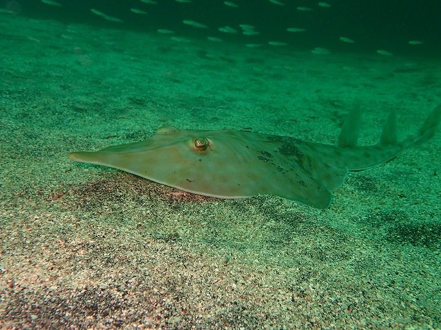 海況の方もうねりもほとんどなく良好です。干潮時の引き具合はあれですが・・・。とは言え出入りもストレスなくできています。透視度の方は午前中はどこへ行っても5mで霞がかかったような感じでした。そんな中1の根を回ってきました。ハナタツやベニカエルは定位置で見れました。また昨日見つかったベニカエルも確認できました。みんな白ですね~。似たような感じです。写真のアオサハギもかなり目に付くようになってきました。繁殖期ですね~。そして昼過ぎに2本目に行きましたが砂地を降りると深場からきれいな潮がみるみる上がってきていきなり20mオーバーの透視度となりました。こうなると今まで見えなかったものがどんどん見えてきます。中層で群れてるサビハゼの赤ちゃんがじつはものすごい数いるのとかサカタザメがそこら中にいるとか、かなりやばかったですね~。かけあがりではビッグなネコザメも居ました。いや~それにしても砂地の綺麗な潮にはやられましたね~。これがあるから面白いですね~。