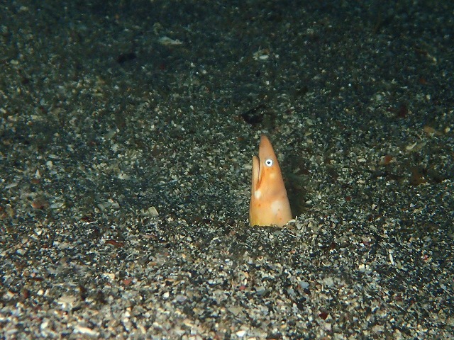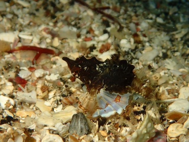 今日のところは波もそれほどパワーもなかったので出入りも問題なくできました。たまにオーバーヘッドの波が来ますが・・・。だんだんうねりになってきそうな感じですねぇ。水中も浅場はそれなりに揺れていて濁ってます。深場へ降りると揺れもほとんどなくなり水も綺麗でしたね。でも天気が悪かったのでかなり水中は暗かったですね。さて、今日も近場をぐるっと回ってきました。砂地のウミテングはなかなか安定しないですねぇ。半径2m位の範囲でちょろちょろしています。まあ、まだ見つかっているうちはいいですが。久しぶりにパクパクも出ていました。こういう暗い時に出てくるんですかね~。近づいてもほとんど引っこまなかったです。抱卵中の黄色いハナタツもちょいちょい動いてますね~。さて、低気圧も今夜通過していきます。これから落ち着いていきますかね~。水も入れ替わることも期待しましょう~。6月7月大募集中です!!7月はサンセットやナイトもありますのでぜひお越しください。お待ちしています~。