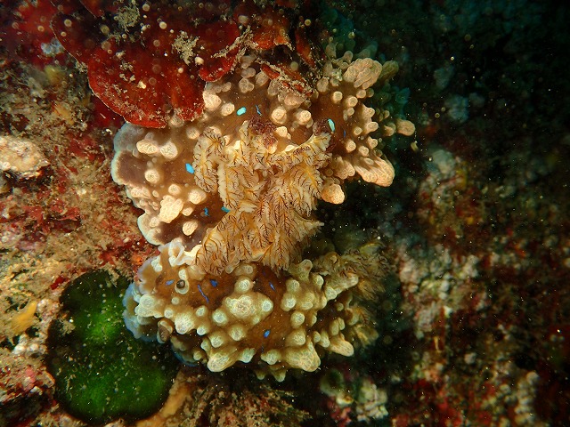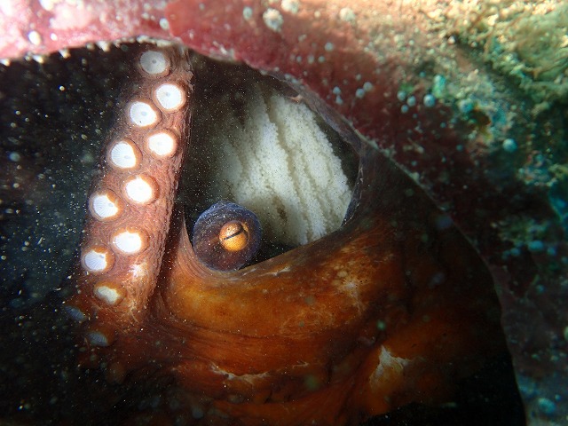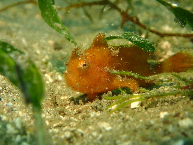 昨夜通過した低気圧ですがさすが元台風だけあって海洋公園にはうねりがしっかり入ってきて海洋公園はクローズとなってしまいました。この為今日は川奈へ行ってきました。こちらはうねりの影響もあまりなく穏やかな海況でした。ただ、ここのところの高気温もあって赤潮が発生していました。港内は赤くなってましたね~。エントリーエリアもちぎれた海藻と赤潮とでなかなかの状態でした。ただ、入ってしまえばちょっと白っぽくてもやっとしていますがそこそこ綺麗な潮でした。10mは見えていますね。いい感じの潮になってきています。IOPも期待したいですね~。さて、エントリーして進んでいくとネンブツダイがかなり群れて居て圧巻です。奥の方では久しぶりにカメにも会えました。まだ小さめの綺麗な子でしたね。会えてよかった~。そして砂地ではアオリイカの産卵床もあり卵がたくさんついています。イカは残念ながら来てなかったですね~。その近くでは小さなカエルアンコウの赤ちゃんが海藻に隠れていました。かなり小さくてかわいいです。後半には大きなカエルアンコウにも出会えました。川奈の環境だとカエルアンコウも居るんですね~。IOPでは見れないのでかなり新鮮でした。タコの抱卵も見れました!!さて、今日見たカメちゃんやカエルアンコウたち、そのほかは川奈のガイドさんが親切に陸でも水中でも教えてくれて見れました。なんて優しんでしょう~。ありがとうございます~。