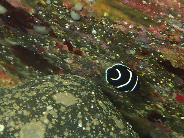 透視度は回復傾向にあって今日は浅場が10m、深場は20mは見えていました。また、水温も27℃とちょっとぬるい感じです。深場の冷たい潮が気持ちいいですね。