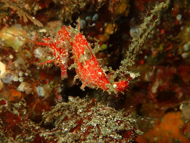 砂地で沖に流された産卵床ですが見に行ってみたらアオリイカが3ペアほど産卵に来ていました。冷たい潮もあったのでそれとのせめぎ合いでしたね。真っ白で綺麗な卵もたくさんついていました。そして以前から見ているテンスモドキの幼魚も見れました。台風乗り切りました~。大きなホシエイも泳いでいましたね~。