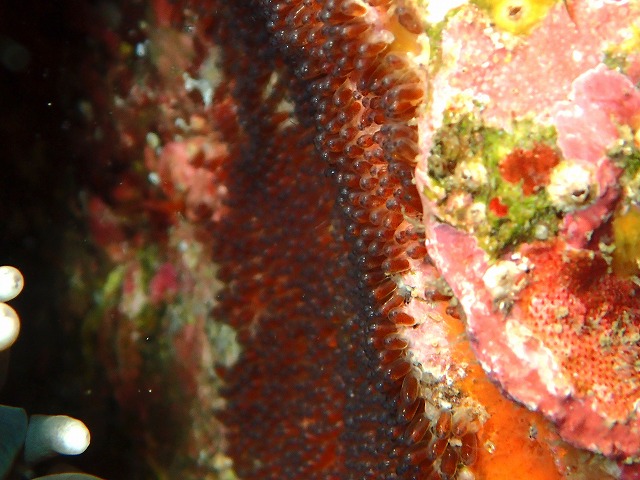 根周りではいつものベニのペアが見れました。あいかわらずオスはかなり見にくいところに居ますね。ハナタツも健在です!!クマノミの卵も元気に育っていますね。そして岩場のあちこちでイシモチの赤ちゃんが群れ群れでとても綺麗です。この時期ならではです。