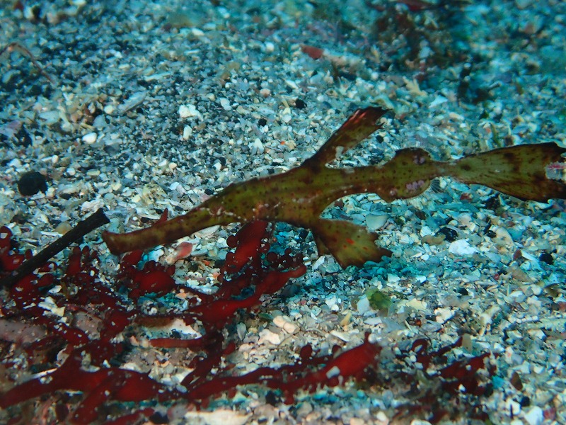 前日見つかったカミソリもほぼ定位置で見れました。人が多いので飛ばされないといいのですが。浅場ではカンムリベラが2匹こちらも定位置でした。さらに1cmくらいのへコアユの赤ちゃんも見つかりました。なかなか小さすぎて写真が難しいです。この後サンセットに行くので再度チャレンジです。