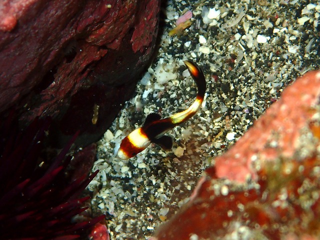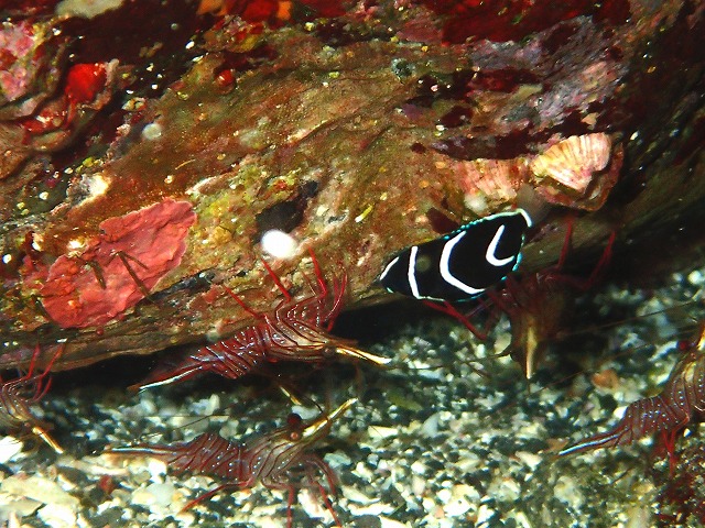 今日も1の根と砂地をじっくりと回ってきました。全体的にイシモチの赤ちゃんがぐしゃっと群れていて綺麗ですねぇ。キビナゴやイワシも凄いことになっています。また、南方種のタテジマキンチャクダイがたくさん見つかりました。ここへきて増えてきましたね~。サザナミヤッコも複数確認できます。さてこの2種とてもよく似ていますね~。写真で見比べてみてください。