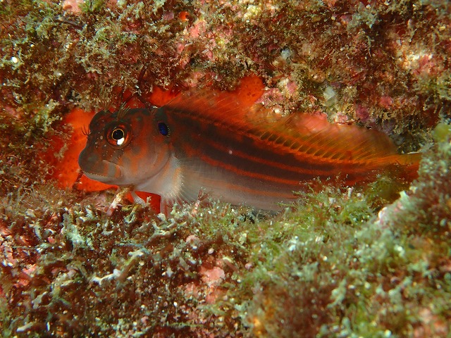スジタテガミカエルウオもいつもの巣穴に居てくれます。なかなか全身見せてくれませんが今日は粘り勝ちですかね~。いいポーズを決めてくれました。他にもミノカエルウオも居ますが今日は穴から出てこずこちらは粘り負けでした(笑)