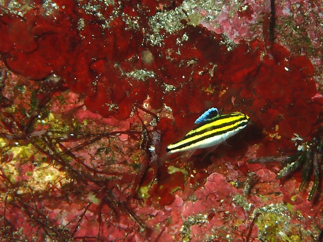 海況ですが今日はならいが吹いたため風波が出ていました。風波なので中に入っちゃえば問題ない感じでしたね。ただ、今日は潮が悪くて透視度が昨日に比べると悪かったですね~。見えるところで10mくらいでした。それでも午後には少しづつ回復してきたので明日はもう少し良くなってると思います。