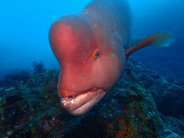 昨日の午後は結構なうねりがありましたが今日はかなり落ち着いてベタ凪とはいきませんが穏やかな海況となりました。水中は天気も曇っていたのでちょっと暗かったですね。ただ、潮自体は悪くなく全体的に青かったです。