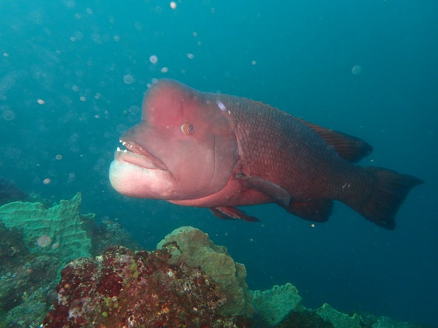 そんな海況の中久しぶりに2番へ行ってきました。5m程度の透視度の中中層を泳ぎましたが軽く流れもあって2番到着までととても長く感じました(笑)途中キビナゴの群れがとても綺麗でしたね~。