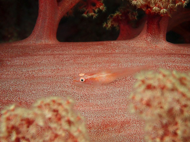 2番に到着すると早速キンギョハナダイのメガ群れが出迎えてくれました。その後仲間がウミウシカクレエビを見つけていました。大きなイシガキウミウシについているペアでした。これも久しぶりでしたね~。とても綺麗なエビちゃんです。その周りをずっとうろうろするコブ蔵も久々の登場でした。