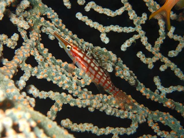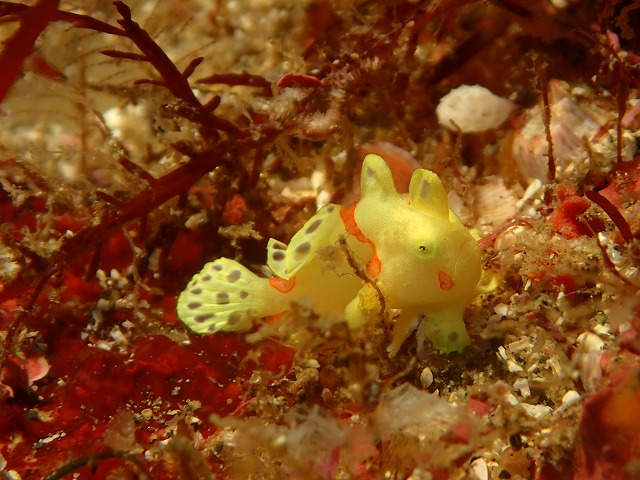 そして昨日見つかったという極小のイロカエルアンコウも無事確認できました。1センチ程度でレモンイエローというなんともかわいい子でした。ちょっとやばいですね~。チビのクダゴンベがかすんじゃいます(笑)他にもアジアコショウダイやフリソデ、カミソリウオなども見られました~。