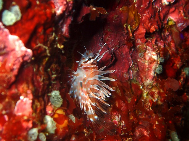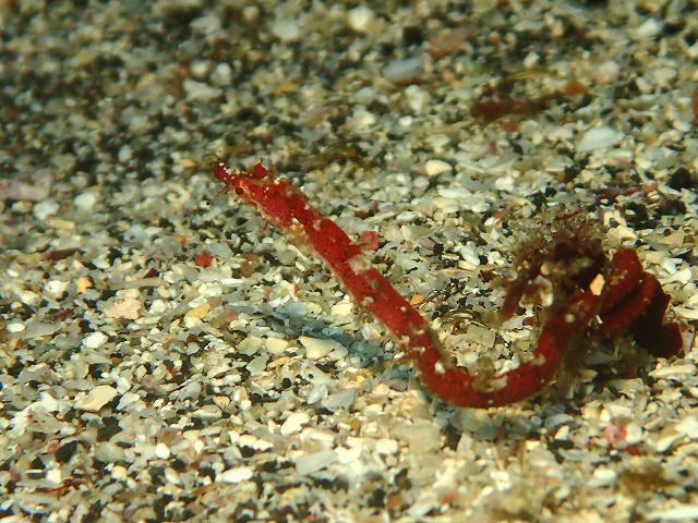 フリソデが亀裂をちょっと移動していました。見にくい位置にきちゃいましたね~。ヒトデとか引っ張り出さないようにしましょう~。カミソリウオは今日も新しいのが見つかったようでどんどん増殖中です(笑)