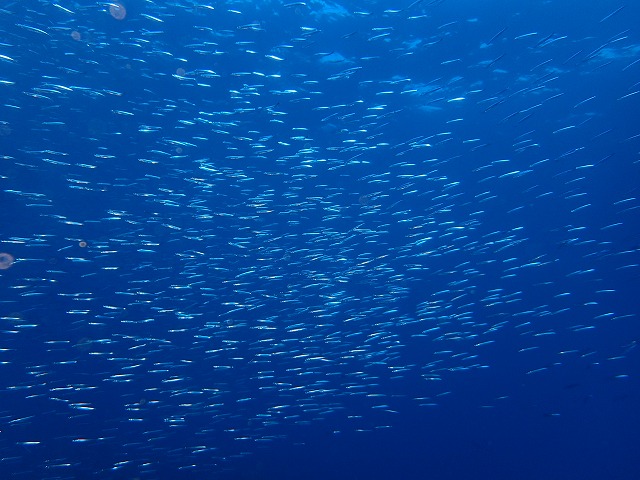 そして帰り際にはアジアコショウダイも見られました。中層は今日もキビナゴシャワーで綺麗でした。ホウライヒメジなんかも良い感じで群れて居ました。そしてルリホシちゃんは今日もシャイでなかなか出てきてくれませんでした。
