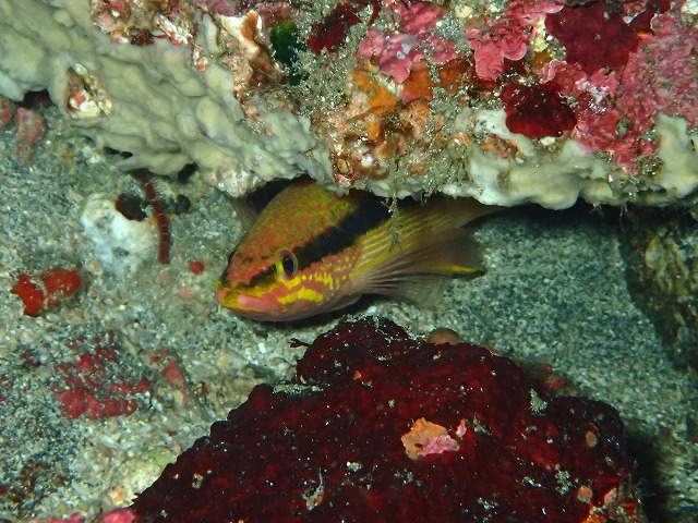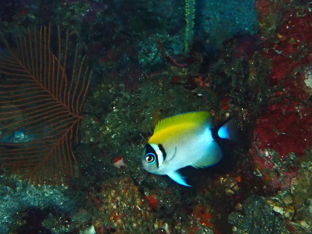 今日は久しぶりにブリマチ方面に行ってきました。中層を泳いでいきますがキビナゴやイシモチの群れがすごかったですね。とても綺麗でした。目的にに着くとハタタテハゼが目に入りました。以前見た時よりも大きくなってました。背びれもピンとして綺麗でした。そして深場ではトサヤッコも見られました。あまり引っ込まずに出てきてくれましたね。ツルグエも見れました。